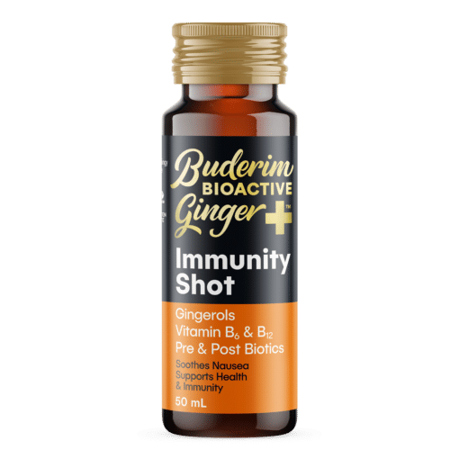 Buderim’s BioActive Ginger+ range contains the most important natural ingredient found in Ginger, 6-Gingerol. Clinically proven to assist in effectively relieving nausea. The BioActive Ginger+ range complements 6-Gingerol with Vitamins B6, B12, prebiotic fibre and postbiotic type probiotics as the ultimate natural solution to feel better & boost your gut and immune health.