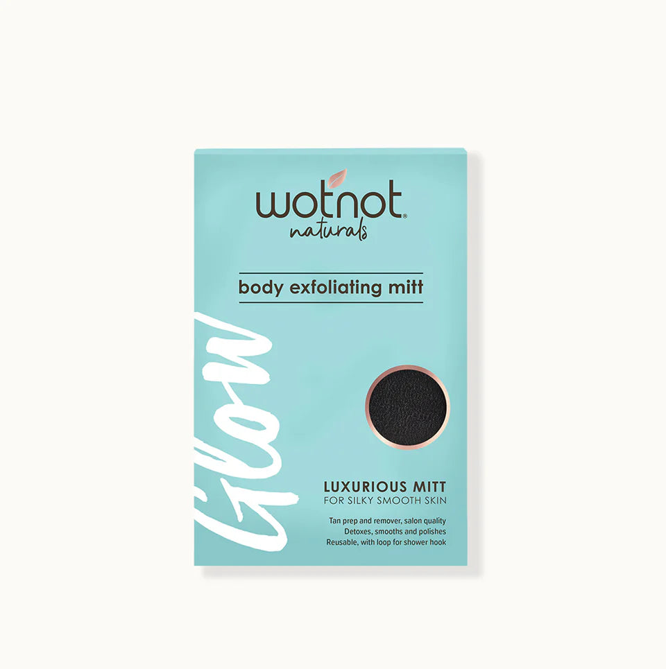 Wotnot body exfoliating mitt is a gentle and effective glove that removes toxins and dead skin cells naturally, leaving luxuriously soft skin perfectly primed for a flawless streak-free tan.